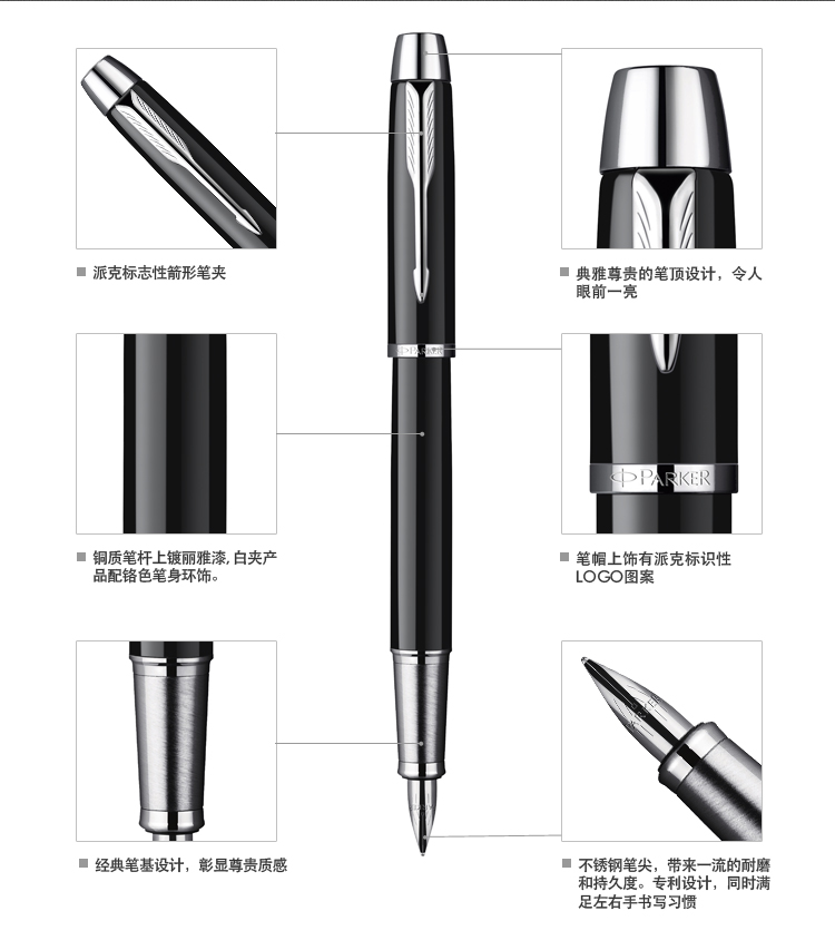 派克(PARKER)IM纯黑丽雅白夹墨水笔/钢笔皮套礼盒套装