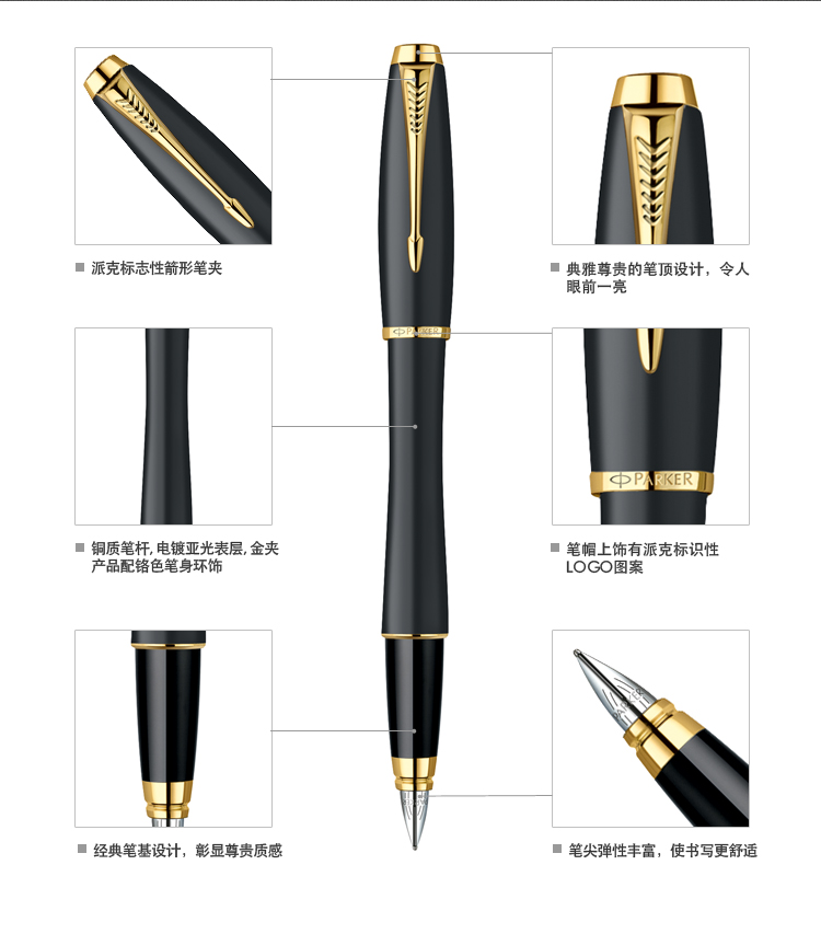 PARKER 派克 都市磨砂黑杆金夹 墨水笔 钢笔