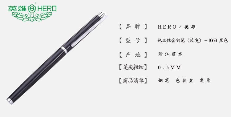 英雄HERO 纯风铱金钢笔(暗尖)-1063 黑色