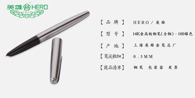 英雄HERO14K金高级钢笔(全钢)-100银色