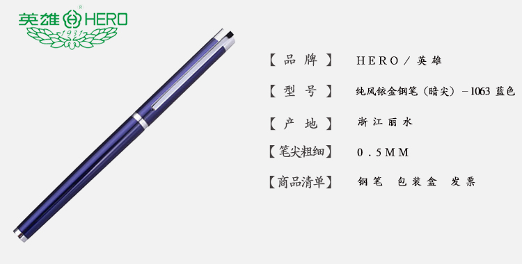 英雄HERO 纯风铱金钢笔(暗尖)-1063 蓝色