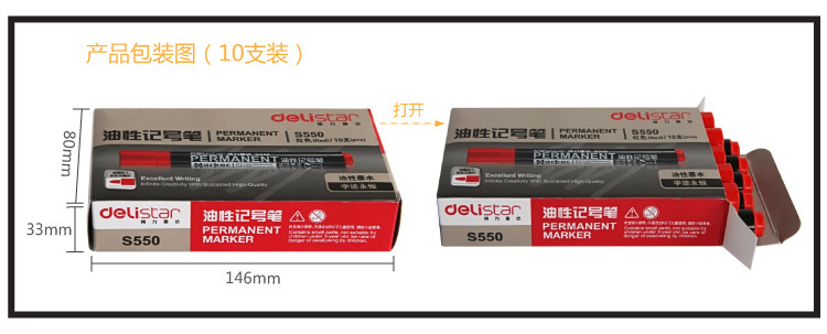 得力(deli) S550 油性墨水字迹永恒记号笔 红色 10支装