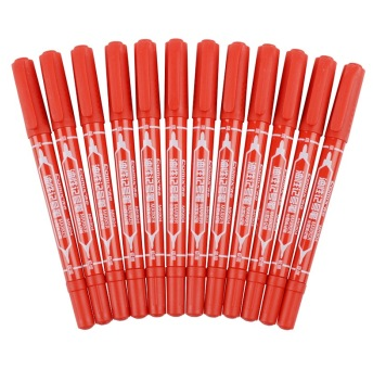 齐心(COMIX)MK804 小双头油性记号笔 12支装 红色