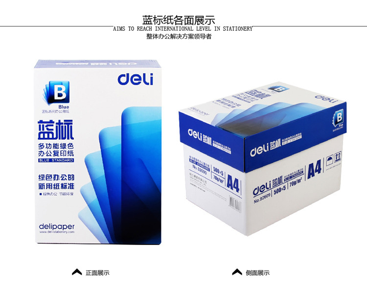 得力(deli)92609 70gA4蓝标复印纸 5包/箱