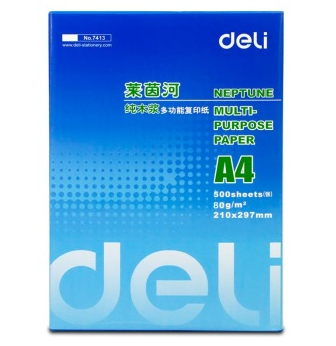 得力莱茵河系列复印纸:7401 ,A4规格(210x297mm),80g重