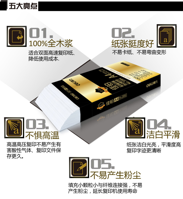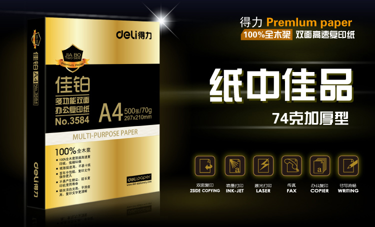 100%全木桨纸,74g的重量,不易变脆,不易腐蚀,不易发黄,不易变皱,便于长期保存各种文件。