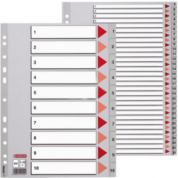 易达(Esselte)胶质分类索引 #47106(100108) 品牌:易达(Esselte),来自瑞典拥有百年历史的高端办公用品品牌 型号:47106(100108) 规格:A4,每套分1-31 包装:10套/盒 材质:胶质 产地:中国 特点:日期、月份及字母、数字排序,多种选择方便识别