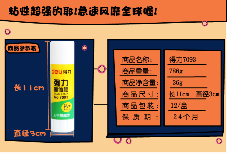 得力(deli)7093 超强粘性PVP固体胶棒-效果更持久36g 单支装
