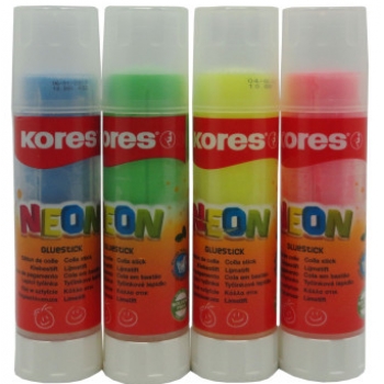 KORES高乐士荧光色固体胶20克,4种亮荧光色:绿、兰、黄和粉红色。甘油型,螺旋挤出,密封性盖帽。不含溶剂,可水洗。儿童、个人爱好和手工的理想选择,纸张不起皱,整洁、快速和可精确使用,涂用后40秒具有永久粘性。