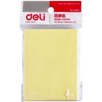 得力(deli)9083 四彩便签纸/便签本/便利贴/百事贴 76×101mm 100张/袋装