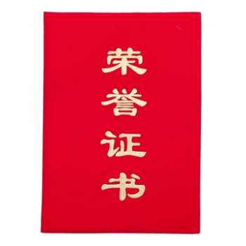 【型号】16K 【包装】1/12/432 【材质】绒面 【规格】B5(180x256mm) 【特点】高档红绒布面荣誉证书 烫金发泡字体 证书 带内芯 多规格荣誉证书! |