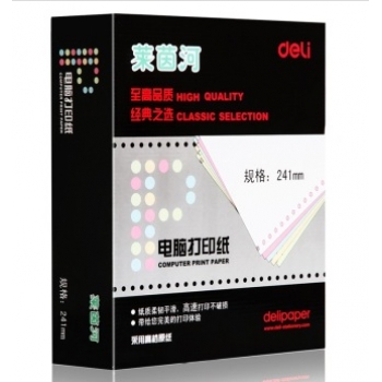得力3103 三联1/2彩色撕边 莱茵河电脑打印纸外包装尺寸为330×258×80mm;打印纸的规格为241×279mm