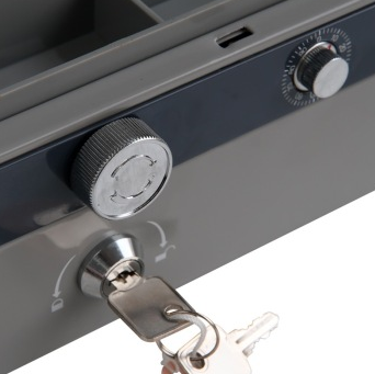 得力(deli)9338 大号金属手提金库 钱箱/收银箱/保管箱 灰色