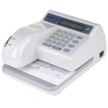 打印金额方法 : 将支票的"小写金额方格"对在支票打字机的"金额定位框"中,从左边对齐后,将拨叉拨到压紧固定支票,直接键输入金额,按"金额"键打印即可。 |