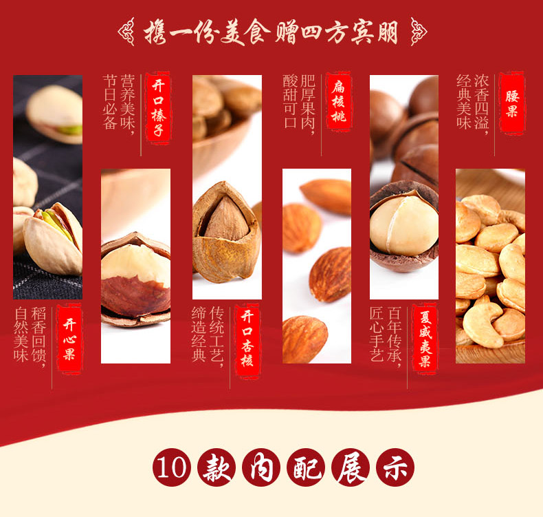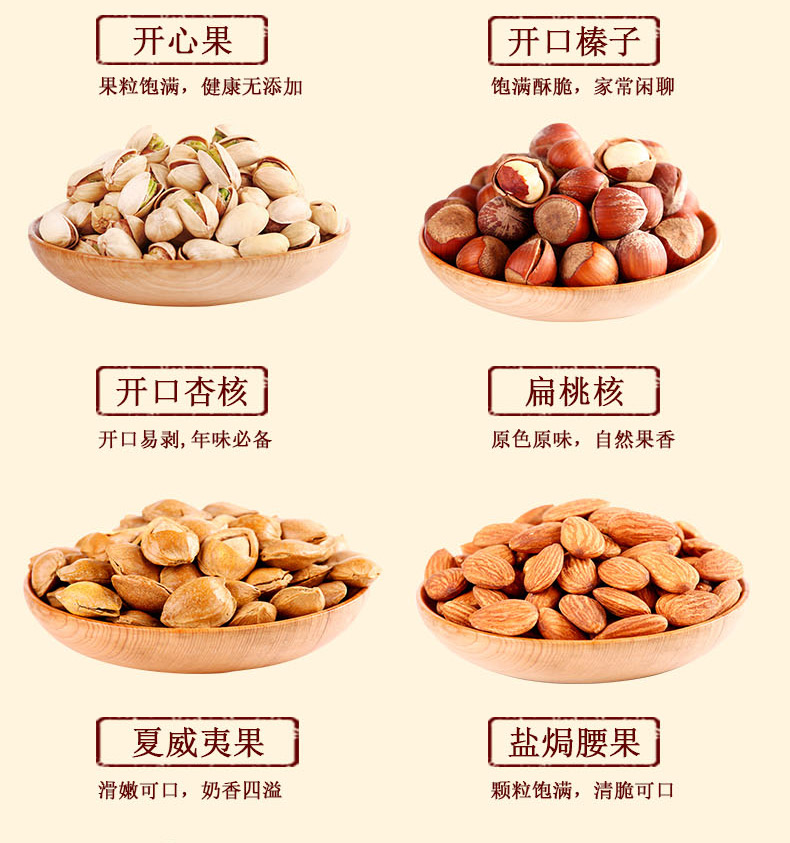 | 内配: | 稻香村开心果140G(豆罐)(2016版) * 1罐 稻香村开口榛子140G(豆罐)(2016版) * 1罐 稻香村扁桃核130G(豆罐)(2016版) * 1罐 稻香村开口杏核180G(豆罐)(2016版) * 1罐 稻香村夏威夷果170G(豆罐)(2016版) * 1罐 稻香村盐焗腰果170G(豆罐)(2016版) * 1罐 |