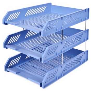 齐心(COMIX)B2060 三层文件盘/文件筐/文件栏 蓝色