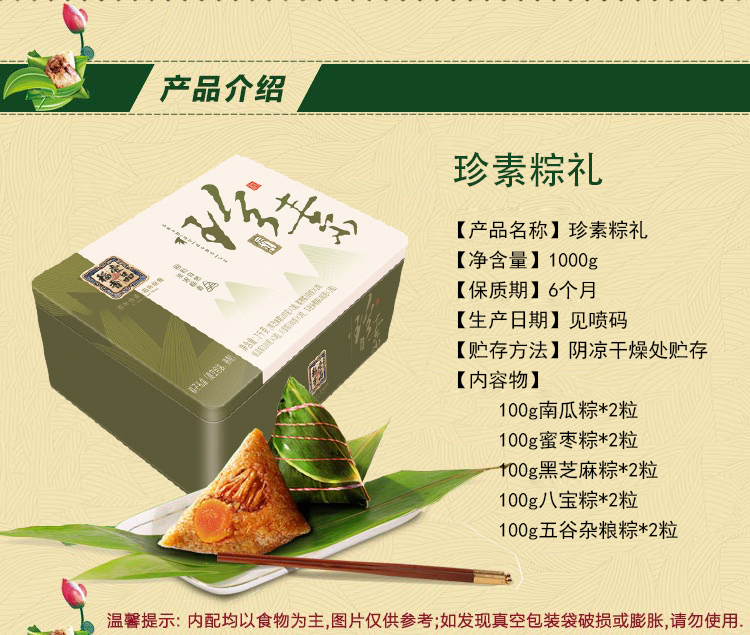 [保定稻香村粽子]珍素粽礼粽子礼盒1000g