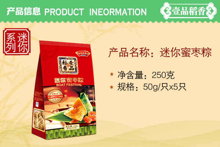 详细配置:保定稻香村迷你蜜枣粽散粽子50g×5只
