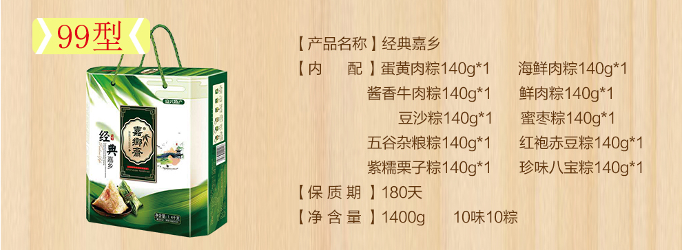 [嘉乡斋粽子]经典嘉乡粽子礼盒1400g