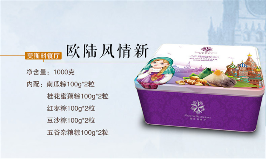[莫斯科餐厅粽子]欧陆情怀(时尚款)粽子礼盒1000g