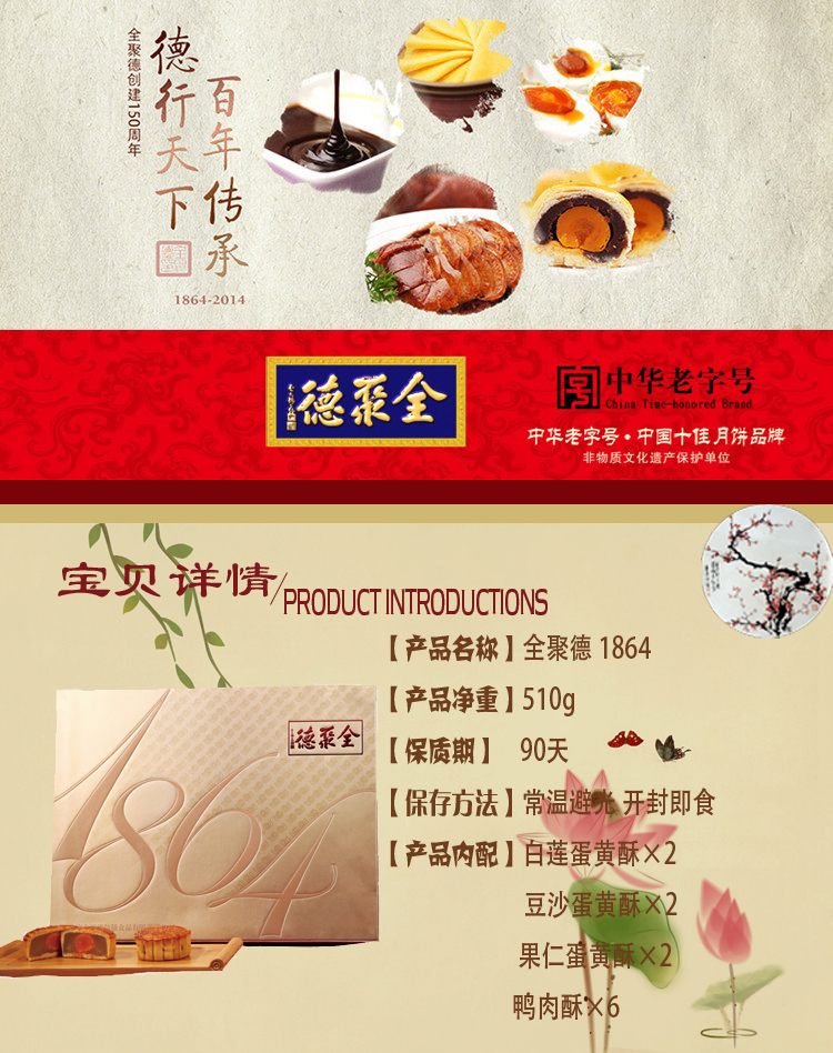 品名:[全聚德月饼]1864礼盒月饼礼盒510g