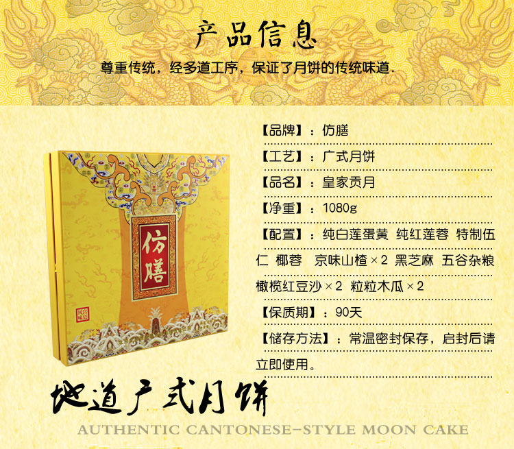 品名:[仿膳月饼]皇家贡月月饼礼盒1080g