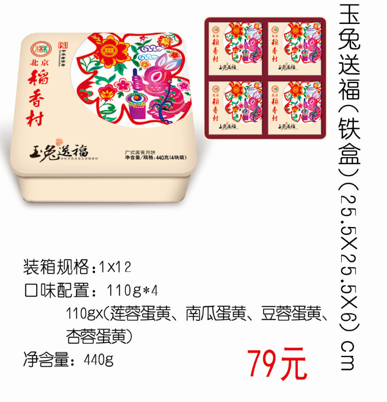 商品名称:北京稻香村月饼]玉兔送福月饼礼盒440g(白盒)