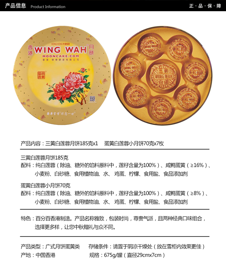 [元朗荣华月饼]元朗荣华蛋黄白莲蓉小月饼420g