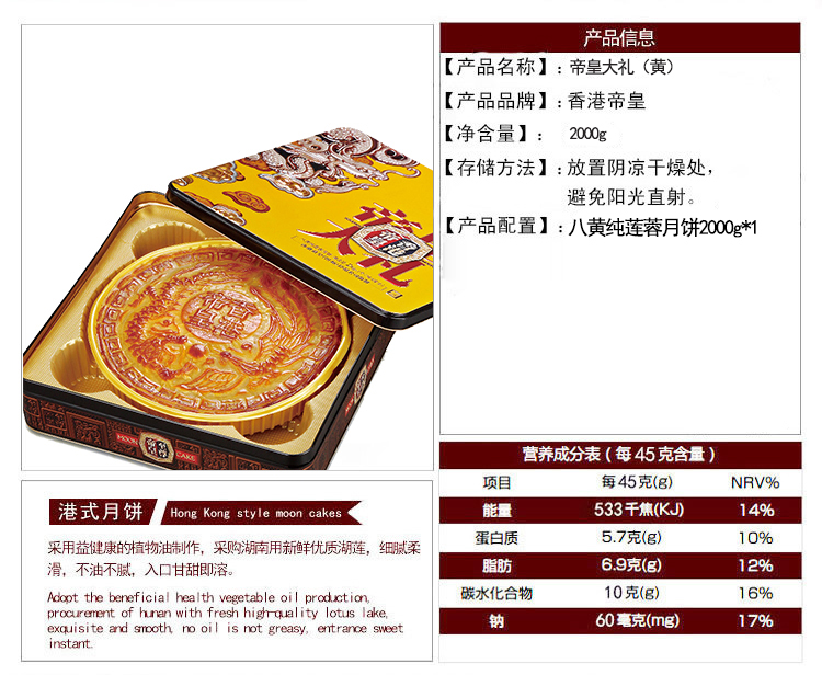 [帝皇月饼]帝皇大礼(黄)月饼礼盒2000g