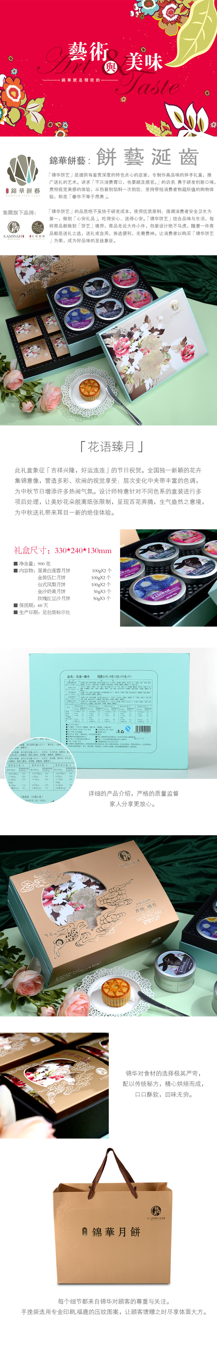 [锦华月饼] 花语臻月 月饼礼盒900g