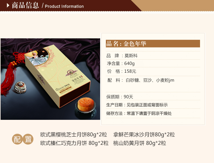 [莫斯科餐厅月饼] 金色年华 月饼礼盒640g