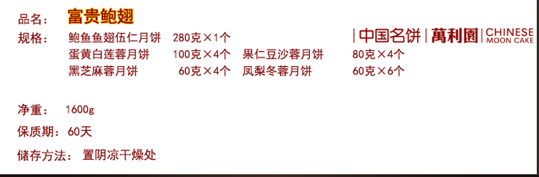 [万利园月饼] 富贵鲍翅 月饼礼盒1600g