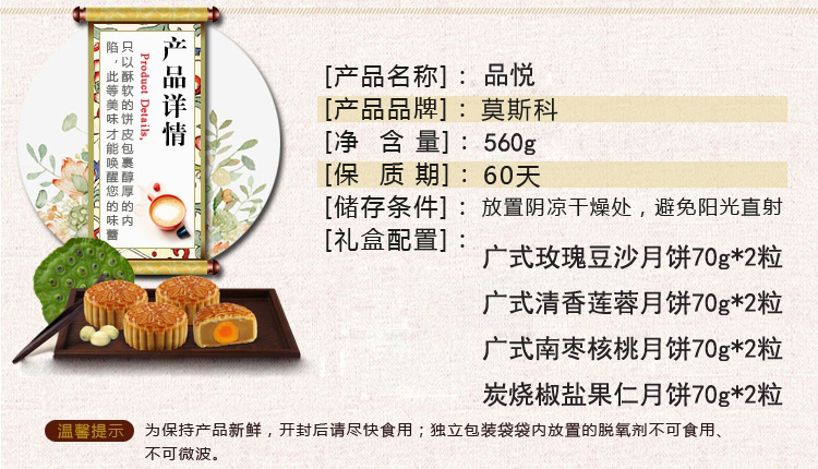 [莫斯科餐厅月饼] 品悦 月饼礼盒560g