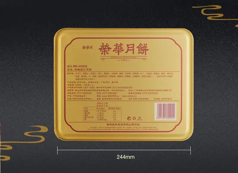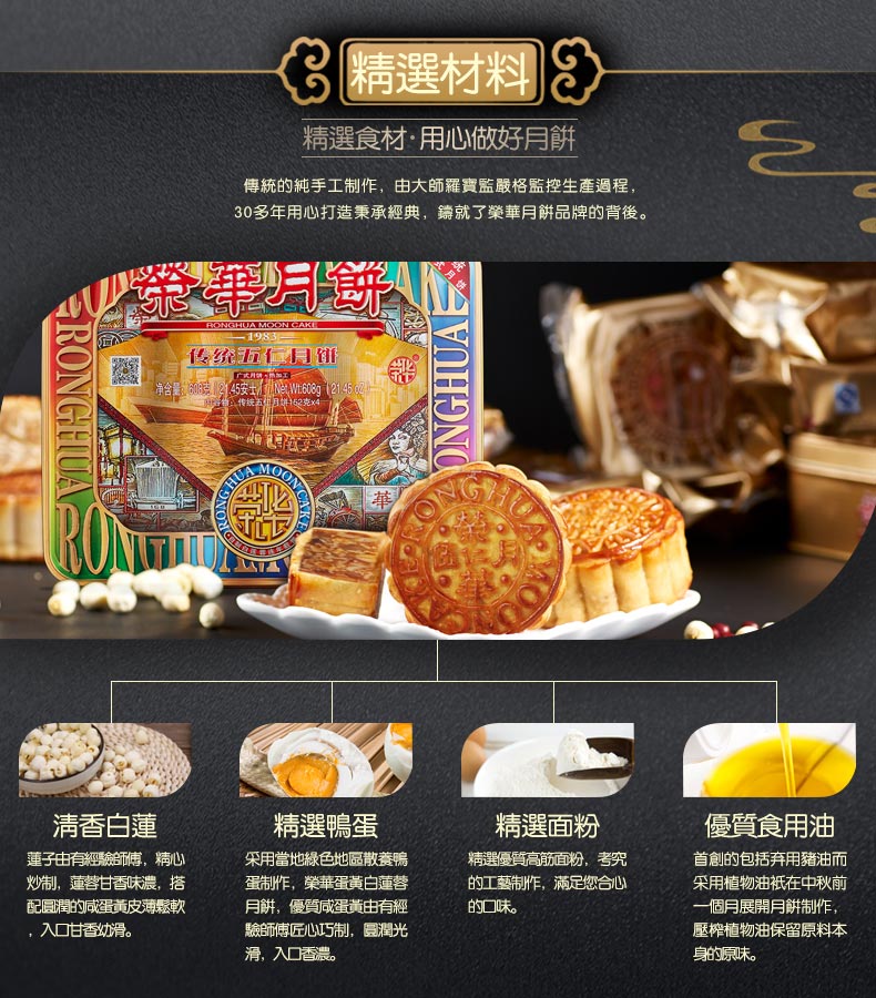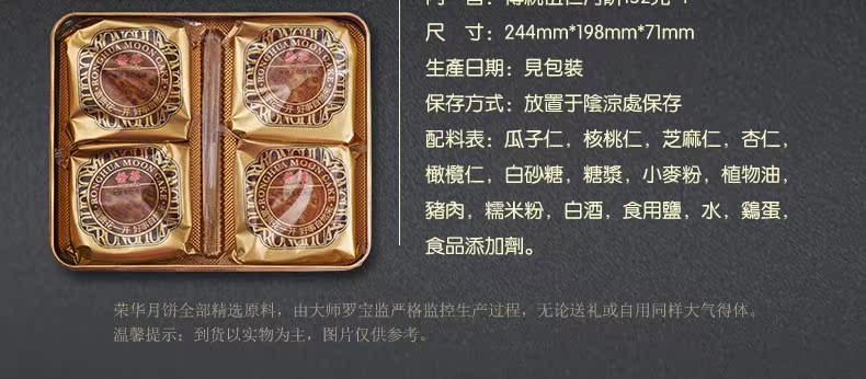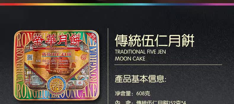 [元朗荣华月饼] 传统五仁月饼礼盒608g