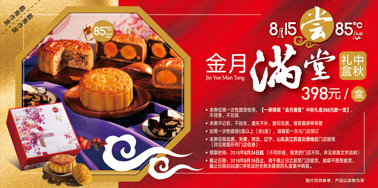 温馨提示:85度C月饼均可购买现货或者提货卷!提货卷可在规定的日期内在北京85