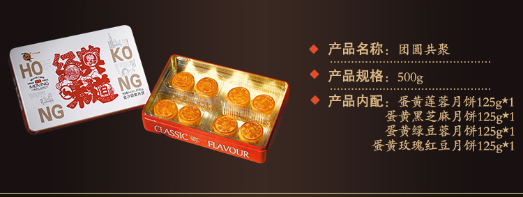 蛋黄莲蓉月饼50g*2 蛋黄奶香绿豆蓉月饼50g*2 蓝莓夹心绿豆蓉月饼50g*2 香柠夹心绿豆蓉月饼50g*2