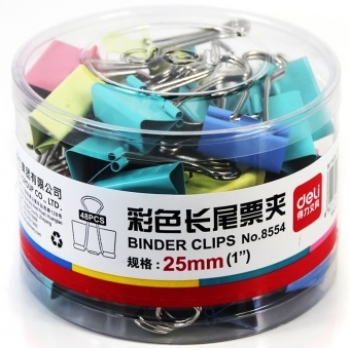 得力(deli)8554 25mm彩色长尾夹/长尾票夹 48只/筒