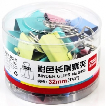 得力(deli)8553 32mm彩色长尾夹/长尾票夹 24只/筒