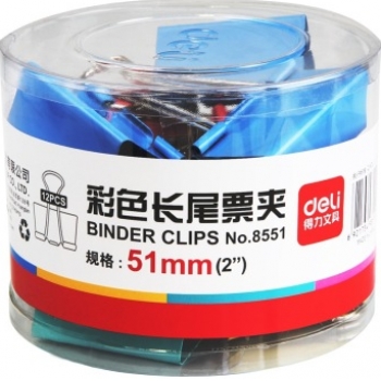 得力(deli)8551 筒装彩色长尾夹/长尾票夹 12只/筒