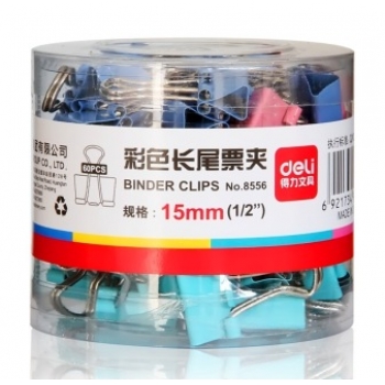 得力(deli)8556 15mm彩色长尾夹/长尾票夹 60只/筒