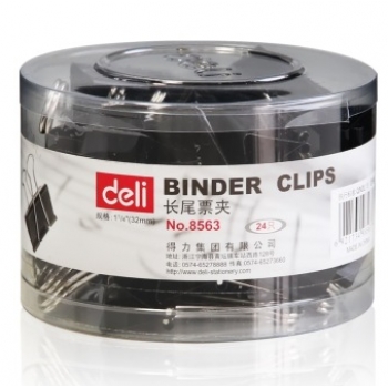 得力(deli)8563 3#黑色长尾夹/长尾票夹32mm 24只/筒