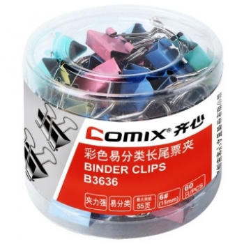 齐心(COMIX)B3636 彩色长尾夹(15mm筒装)60只/桶