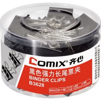 齐心(COMIX)B3628 黑色长尾夹(25mm筒装)48只/桶