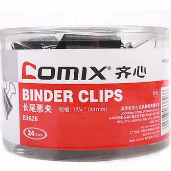 齐心(COMIX)B3626 黑色长尾夹(41mm筒装)24只/桶