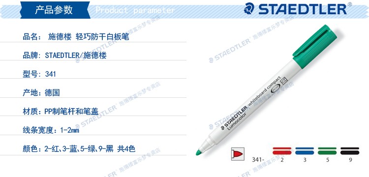 德国 施德楼STAEDTLER 341 多色袖珍型轻巧防干白板笔 红蓝绿黑 黑色