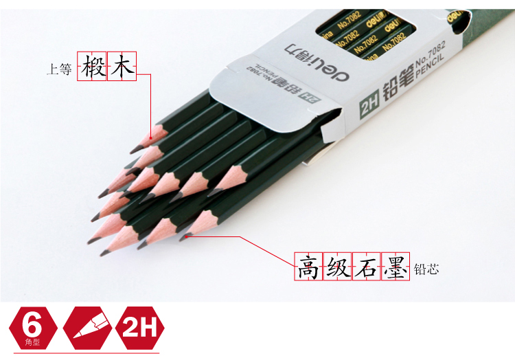 得力(deli) 7082 安全高级石墨铅芯素描 绘图2H铅笔/ 12支/盒